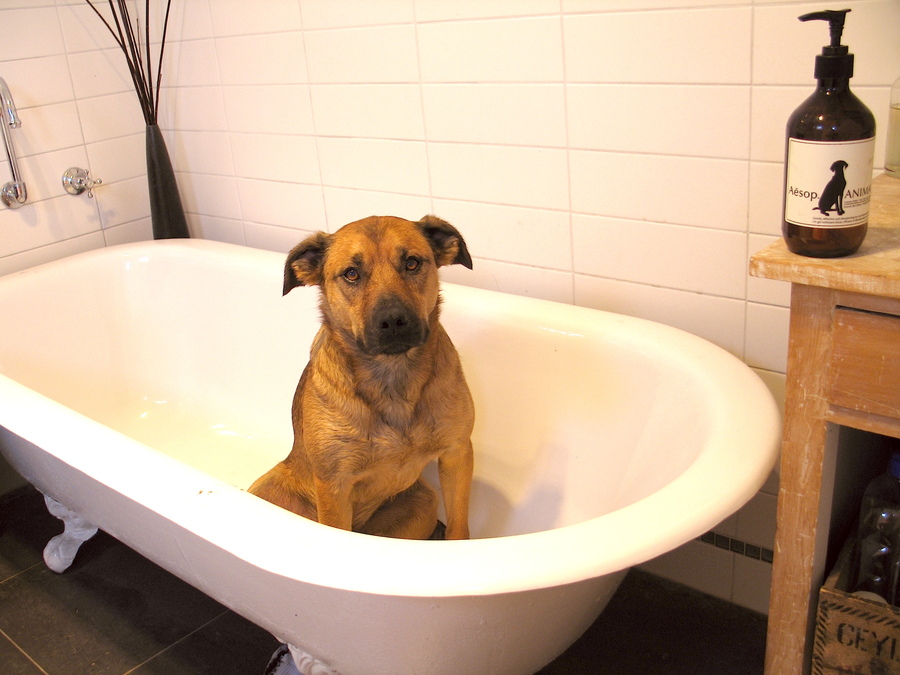 Jack loves bath time so much that when we get home from a walk (and he is wet and muddy from wading in the creek) he will walk through the house, down to the bathroom, and jump straight in the bath ready and waiting for the new range of shampoo (or is it the all over rub down after wards?). Who knows what creative organic combination we will try on him next: ‘comquat, rose hip and orange blossom’ or ‘clove, lychee and honeysuckle aged in oak barrels for 5 years’ either way (hopefully) no one will be running to wash their hands after patting Jack.