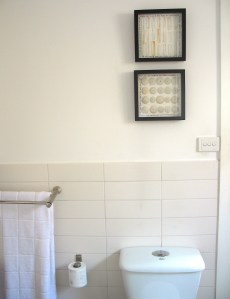Now you can hold your head high and be proud that you have been a part of the shell-art revival. I have my shell-art proudly on display above our toilet. I figured it would give the males something to occupy their minds when using the bathroom!