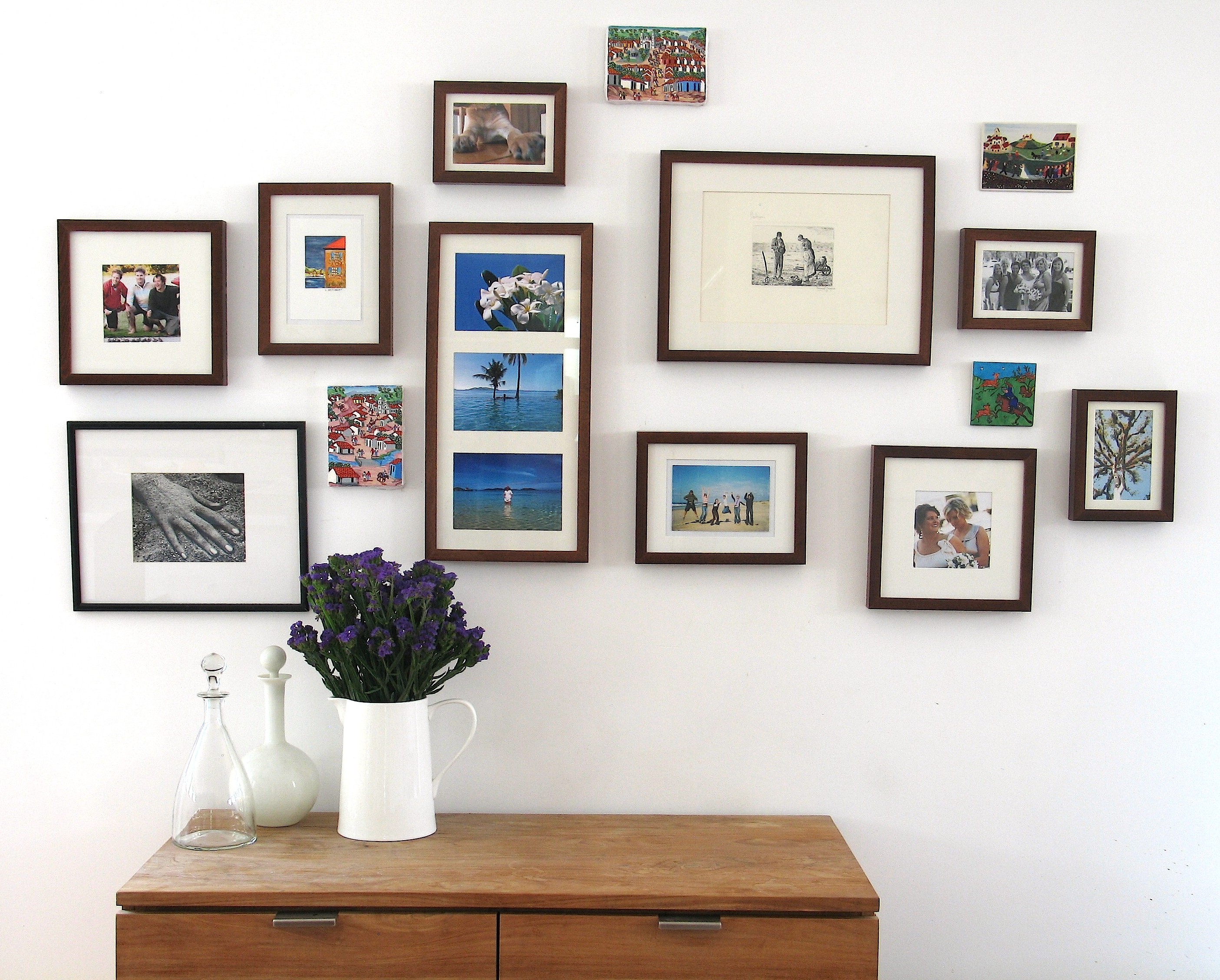 Over the last 10 years I have collected artwork from trips to Nicaragua, France and London. Accompanied by images from holidays in Tasmania, Guatemala, Fiji, Broome, a road trip to New South Wales and our Wedding day. Naturally, Jack (our staffy X heeler dog) features in one way or another. I change it frequently, which makes it a focal point for visitors.