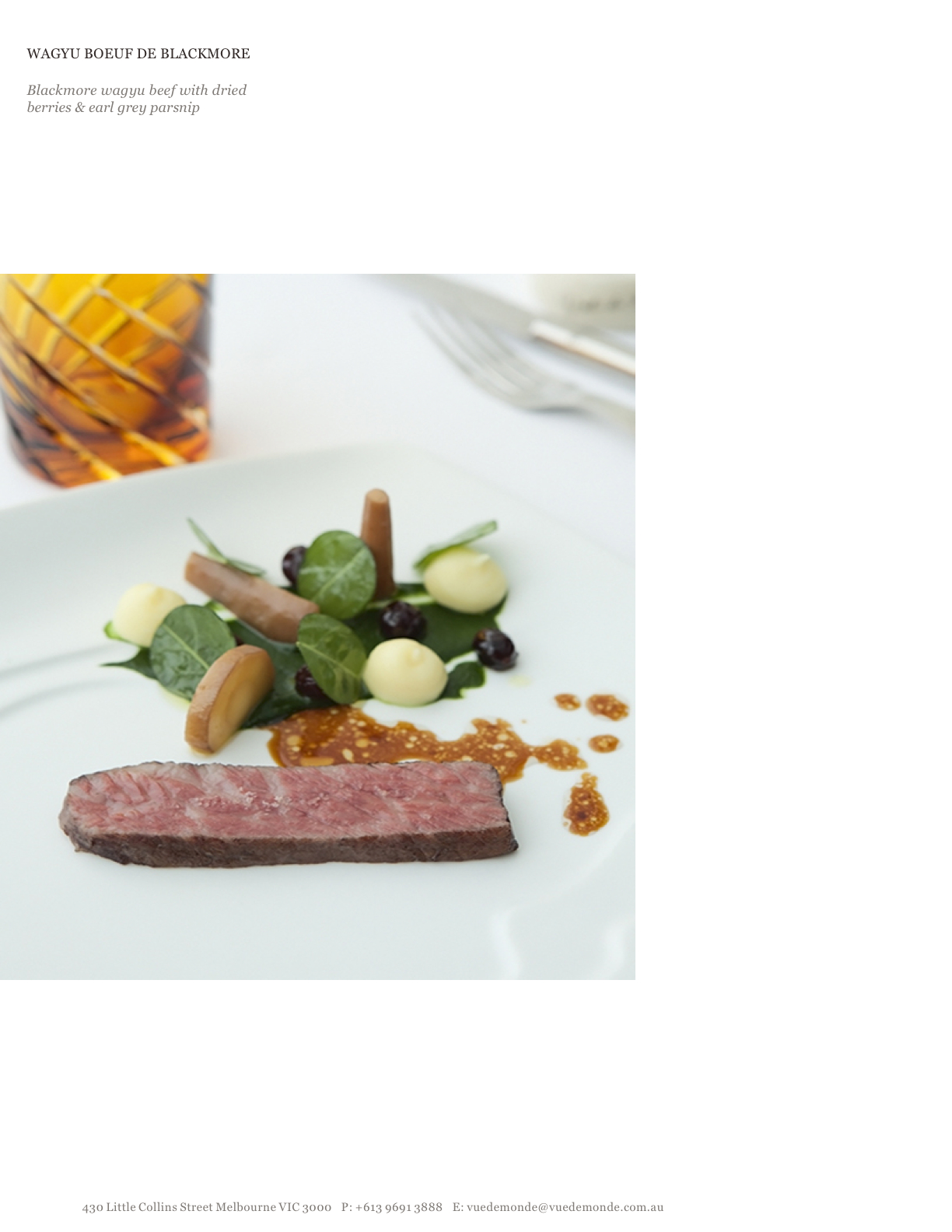 Blackmore wagyu beef with dried berries & earl grey parsnip