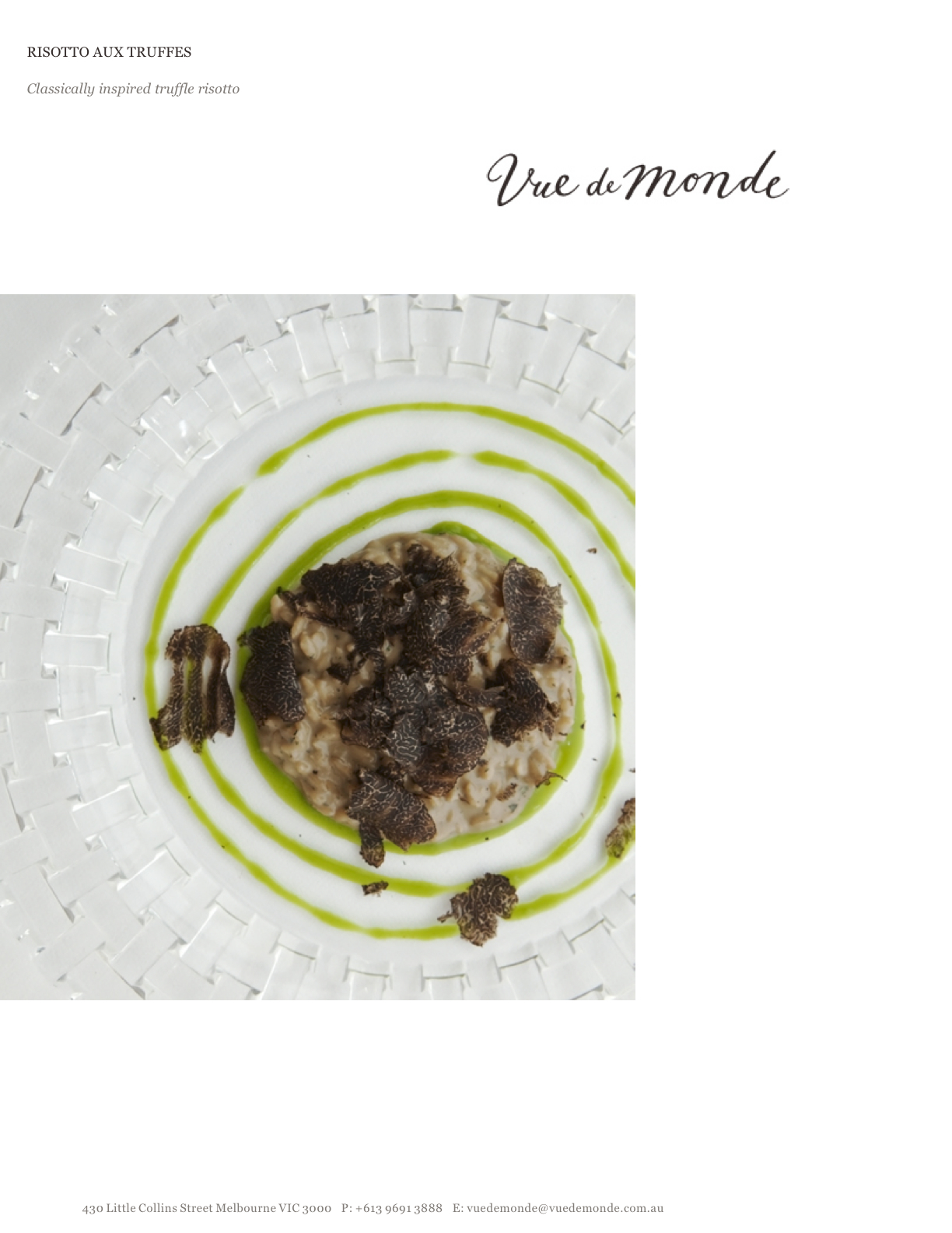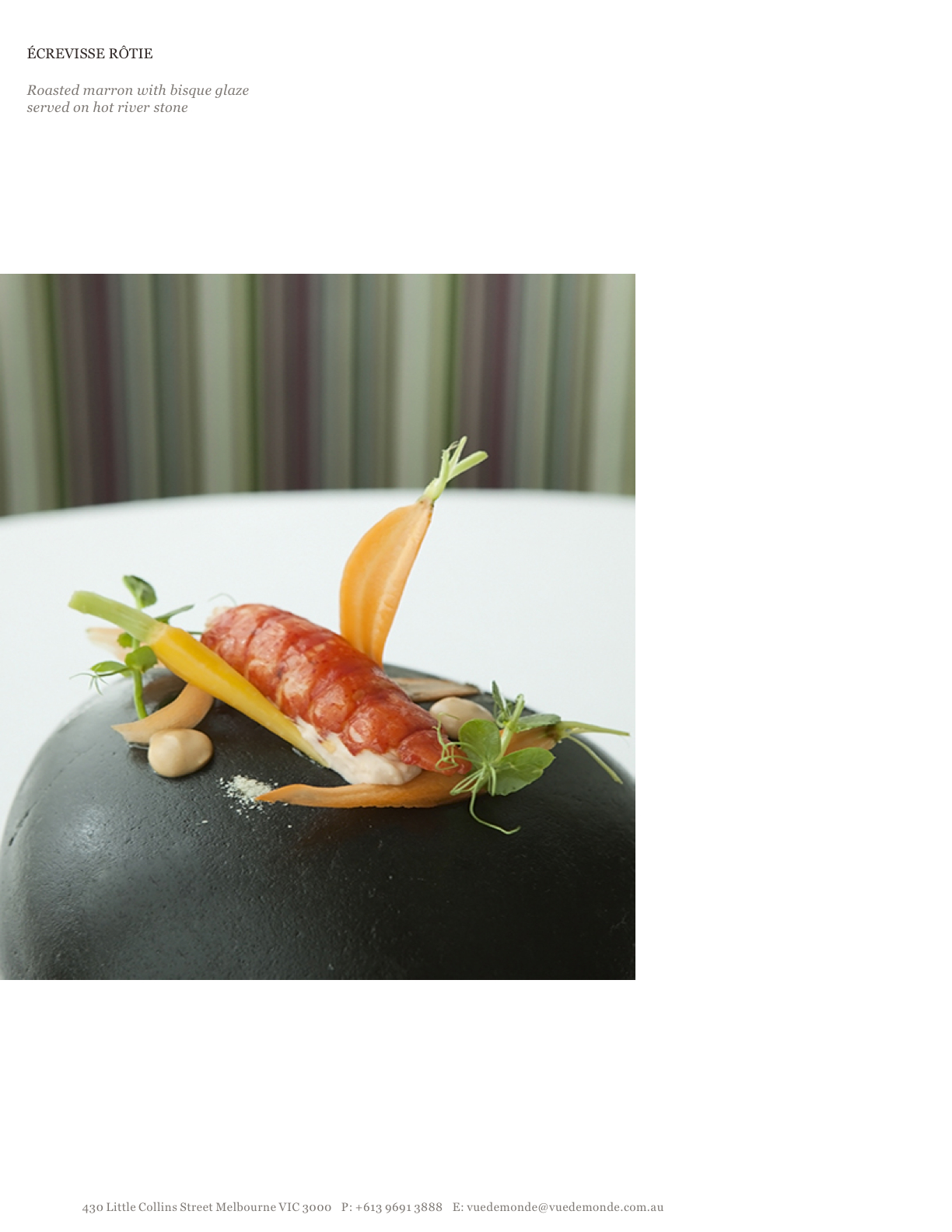 The recipe is below (care of Vue de Monde), or link to the recipe on their website: