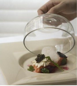 One of the highlights was the Ocean Trout smoked at the table. They placed a glass dome over the plate, and attached a cord to an opening in the dome and pumped smoke into the dome that smoked the fish just before serving. At the table they removed the dome – the smell of the smoke was spectacular, and the flavour through the trout a million times better.