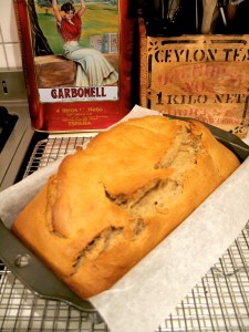 Lucky for me a recent visit to mum’s proved very fruitful (excuse the pun!). I arrived and offered ” a cuppa tea, and a slice of the banana bread. I made it weeks ago, but it freezes really well” – Bingo! So I did the taste test, and was suitably impressed – whilst also imagining what a slice fresh from the oven would be like.