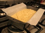 - Grease a loaf tin and line the base with baking paper, leaving some paper overhanging the two long edges of the tin.