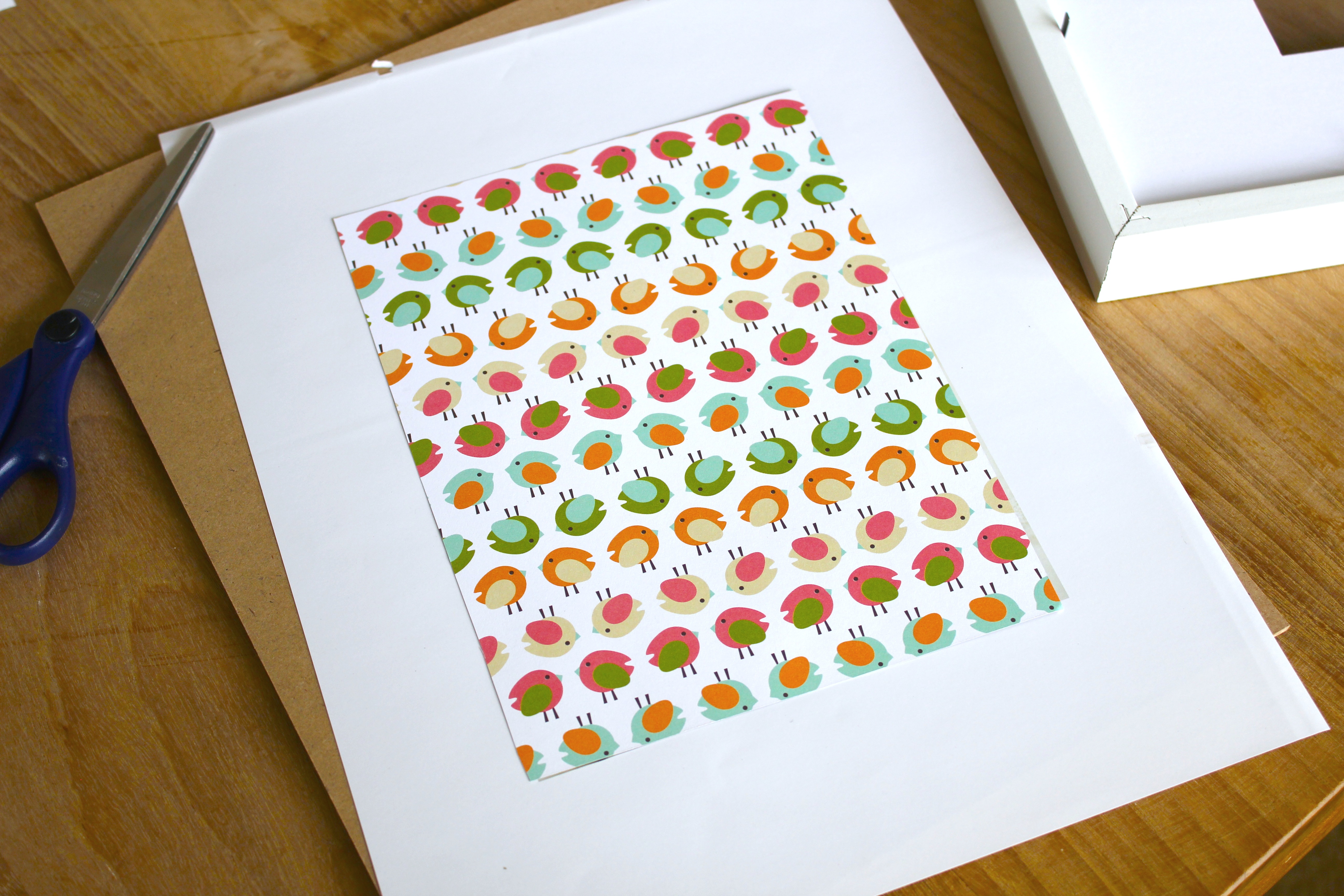 The size of your paper will depend on the size of box frame you have chosen. You want the paper larger than the display area within the frame.