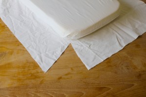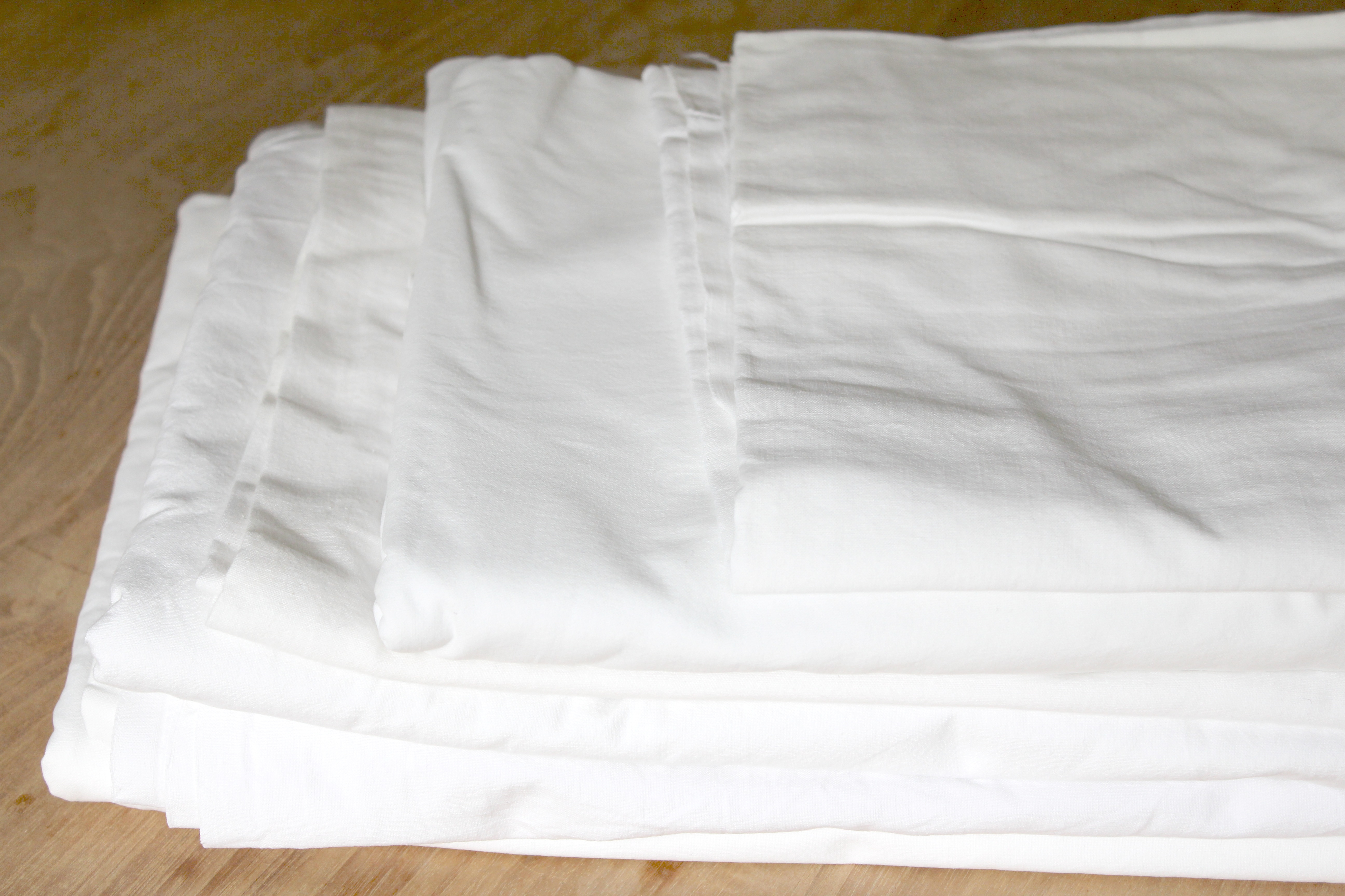 You can imagine my excitement when mum asked me if I wanted any of the beautiful, white, top quality, 100% cotton, single bed sheets she had in her cupboard. They were my grandmothers, and had been sitting in mum’s cupboard since she moved into a nursing home several years ago. They were a really thick cotton sheet (great for soaking up baby vomit, wee and poo!), and in excellent condition. Of course I said yes to her offer, and returned home with a bag full of material to transform into sheets.
