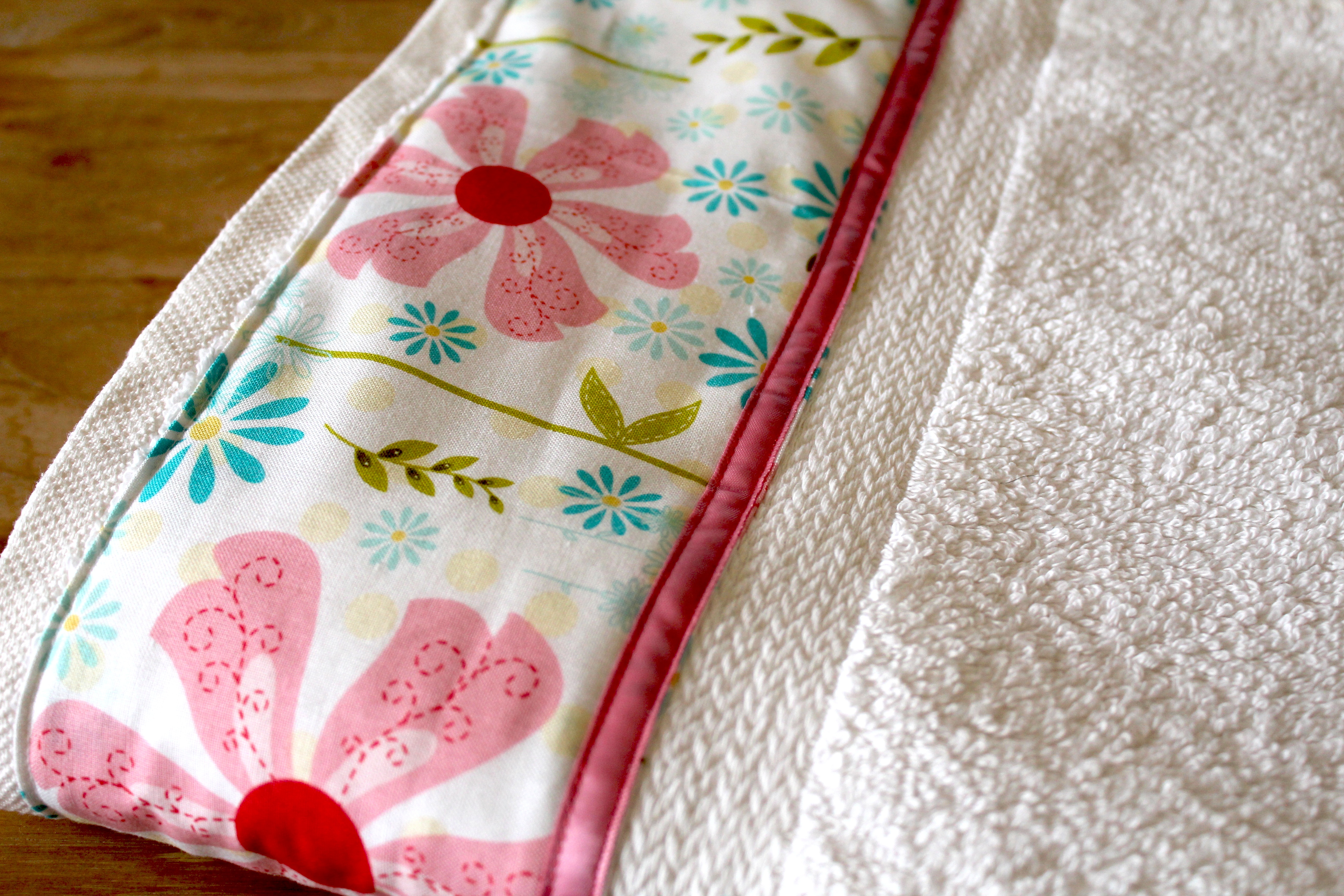 Using this beautiful material from Two Monkeys Fabric Shop (it reminded me of Spring) I made two towels for Heidi…