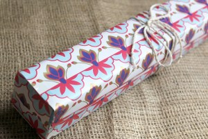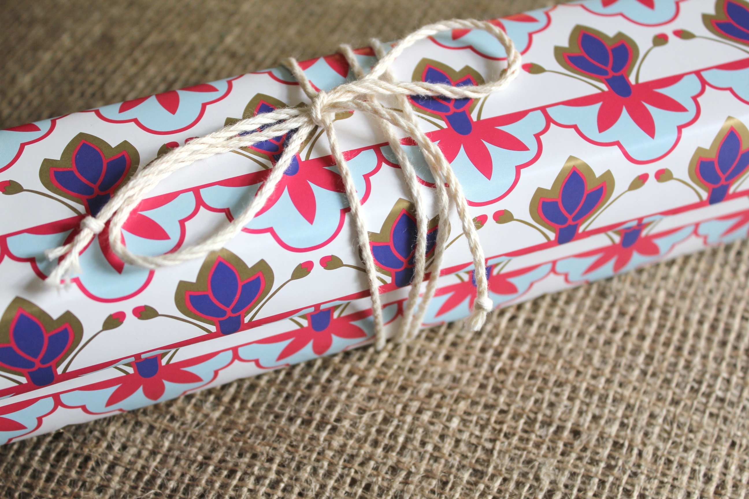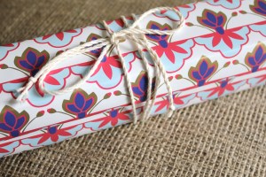 I covered the box with beautiful wrapping paper from Mozi, and lined it with tissue paper (and filled it with my banana bran muffins)