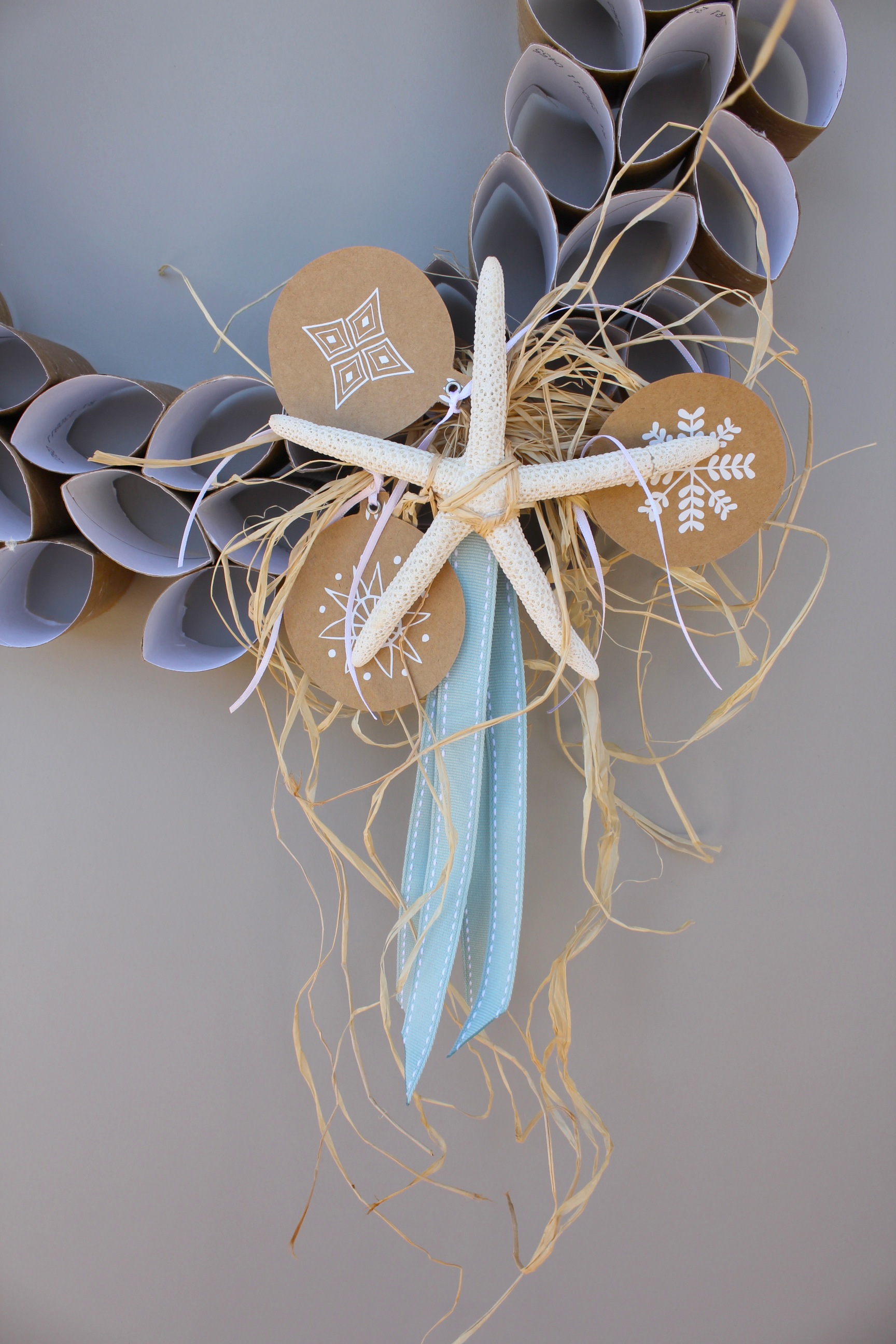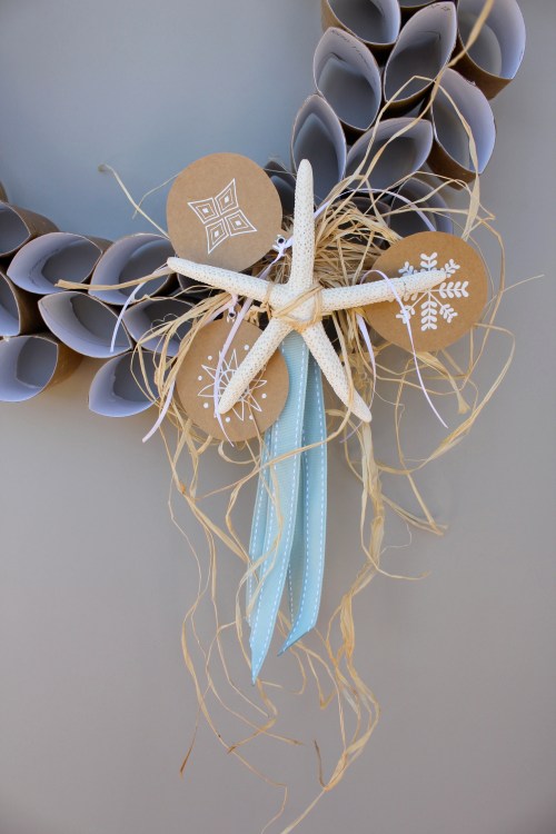 I used Kikki K Christmas gift tags to compliment the natural cardboard tones of the toilet paper, along with a star fish and some raffia and ribbon. Fingers crossed we don’t have a wet lead up to Christmas or I might end up with a rather soggy wreath (will keep you posted!!).