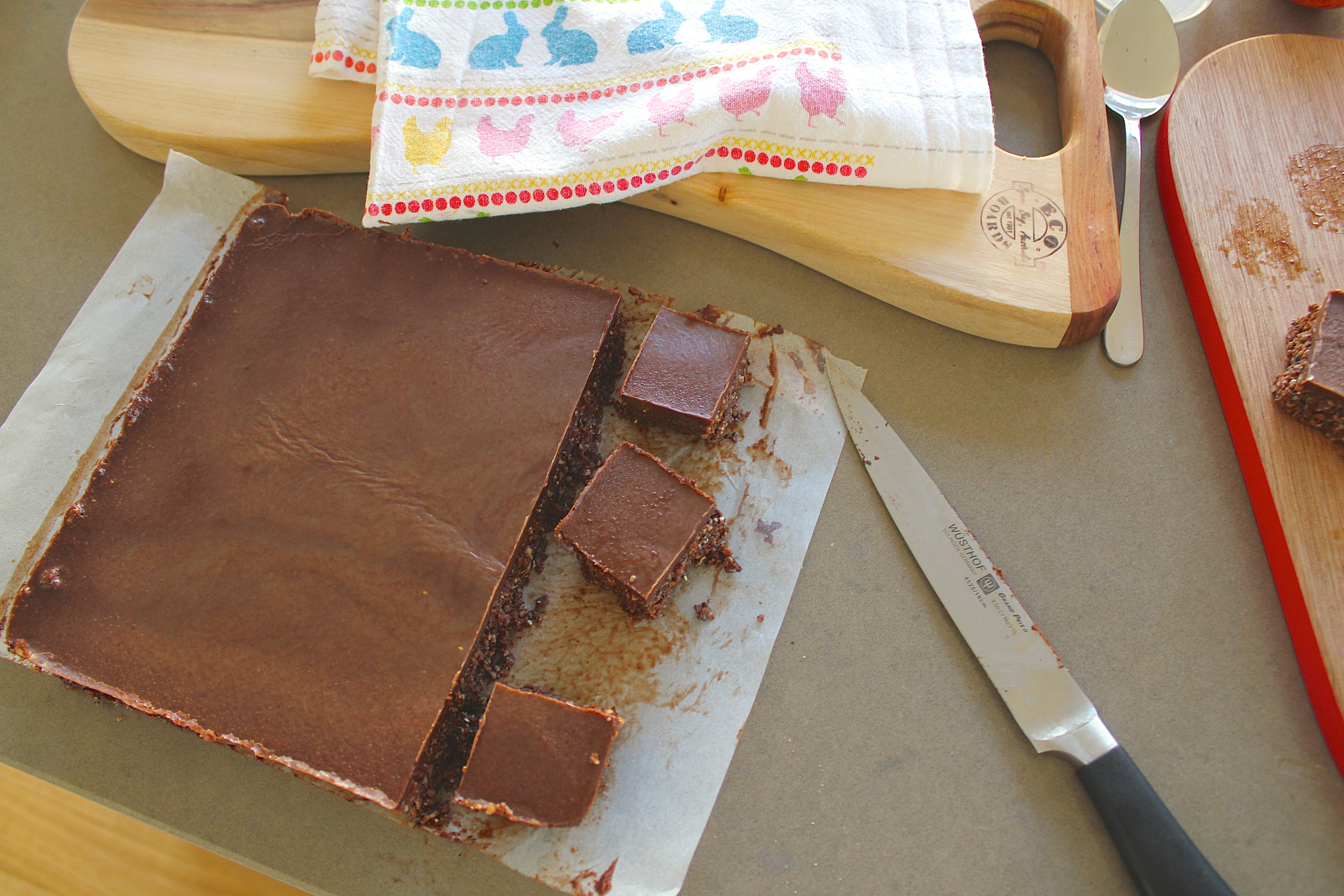 Lying in bed this morning, I noticed a friend had liked this recipe on facebook. Curiosity (and an early morning chocolate craving) forced me to follow the link to discover Flourish Wellness. More importantly, this raw chocolate slice recipe they had posted.